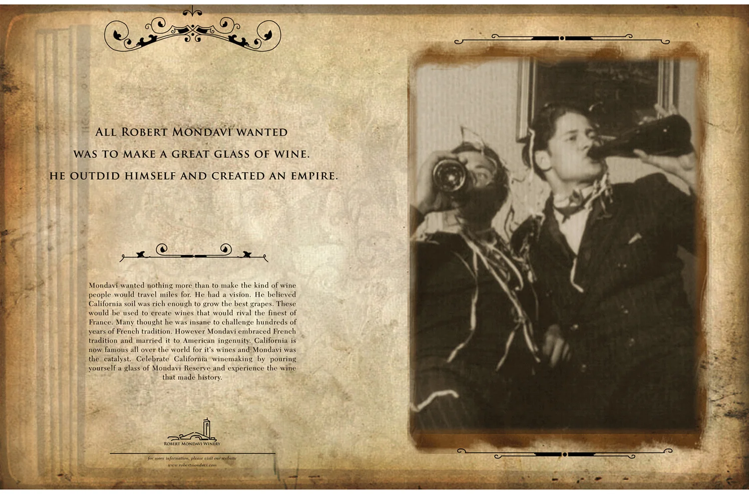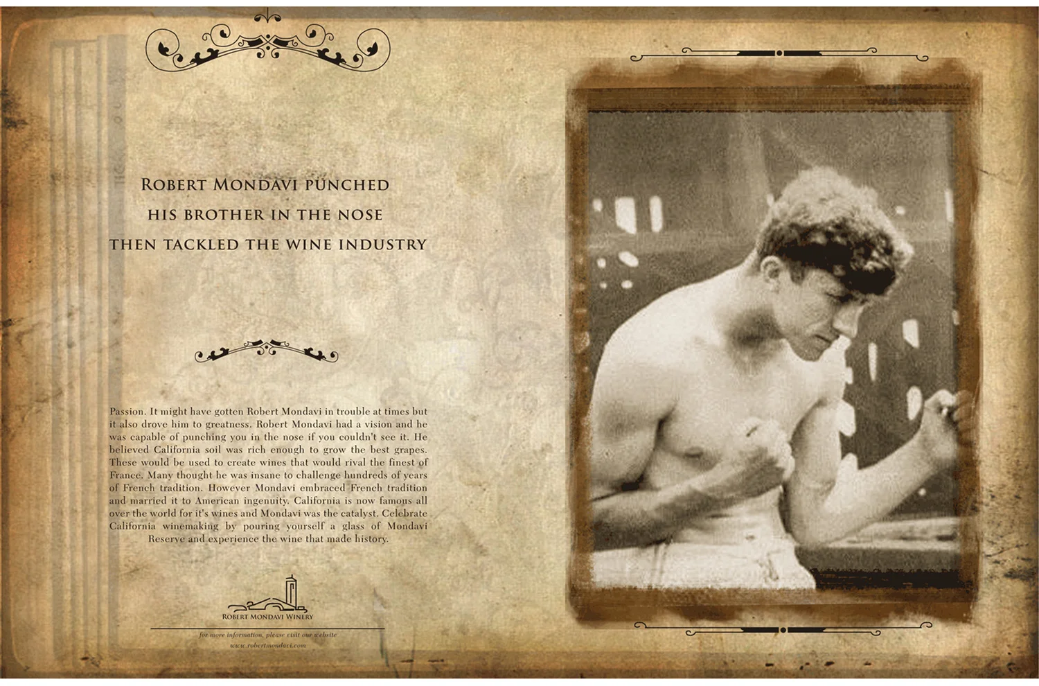 We didn't want to do the cliche wine ad with a beautiful shot of the bottle and vineyard. We dug a little deeper and based the campaign on Robert Mondavi's history, stories, temper and love for wine.